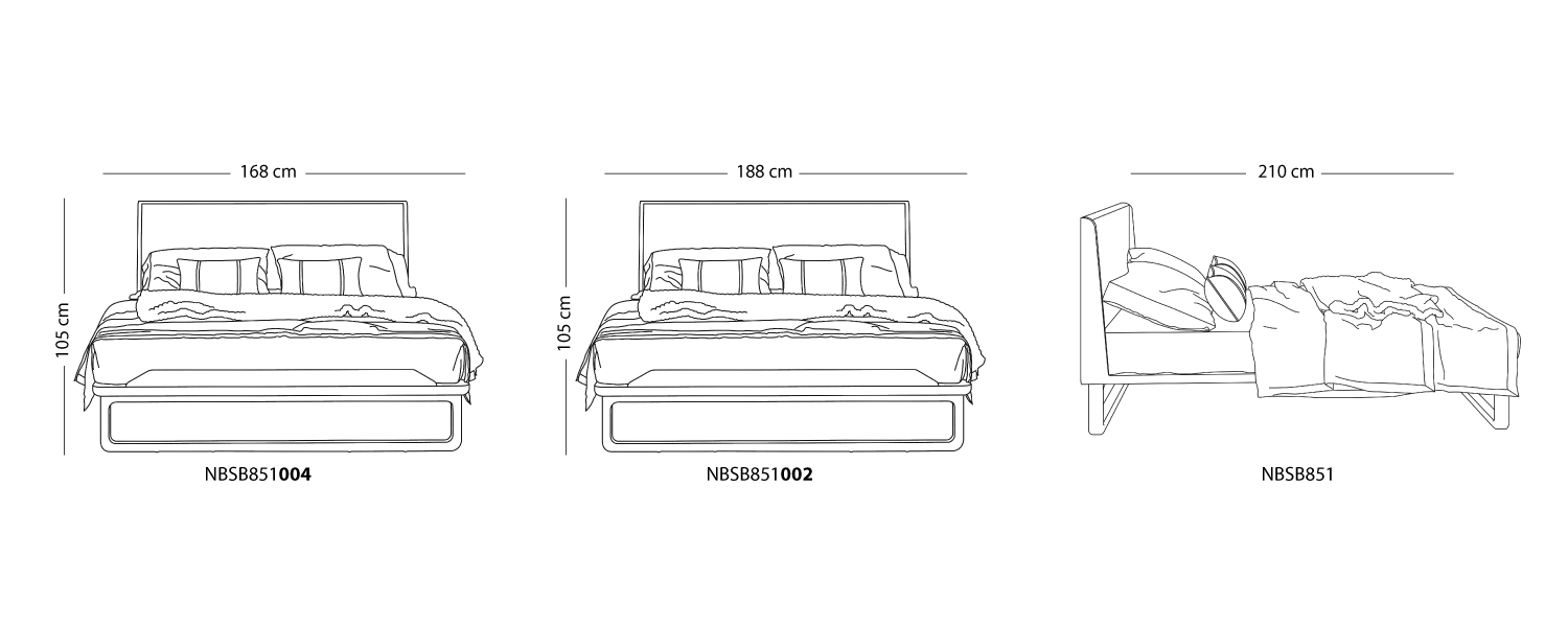 Bed Legs: Curved, integrated legs made of natural beech wood