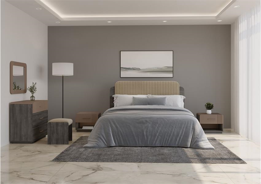 Bed: The Uraman bed is a PostModern design with a sturdy construction that ensures long-lasting support for a restful night''''''''s sleep. The upholstered headboard provides added comfort and a cozy backdrop for lounging or reading.