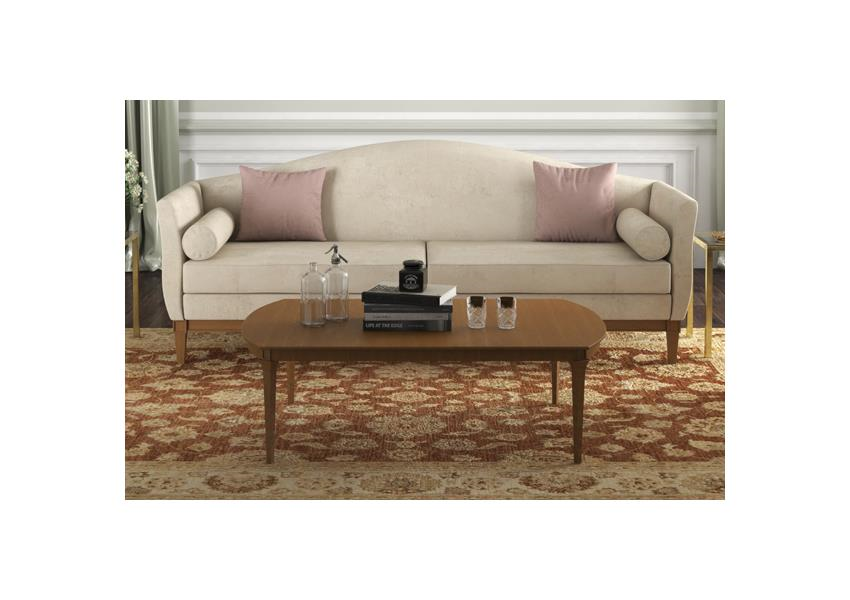 In terms of style, this front sofa is placed under the neoclassical style, its top form is very simple and oval. Its base has a beautiful wooden lathe design that helps make this product attractive. The shape of the legs in front of the sofa is exactly the same as the legs of the sofa and dining table family. It can be provided in the quality of wood color (colored and coating).