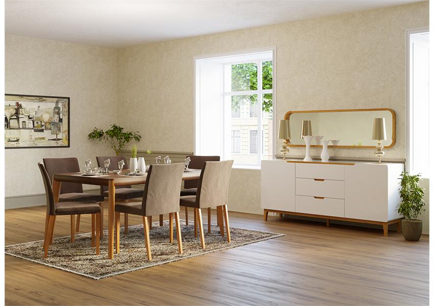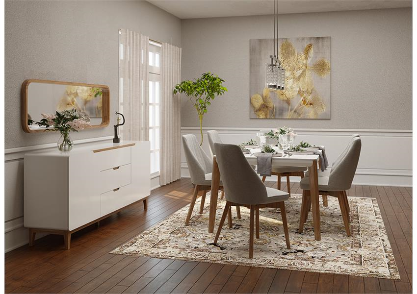 This console table is designed in a post-modern style, with the wooden front parts and legs carefully matched to enhance its visual appeal and create perfect harmony. The Zola collection includes its dining room set, console, and TV table. The available colors for this product are white and gray coating finishes.