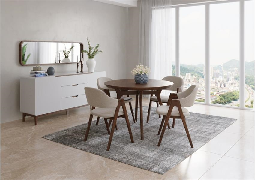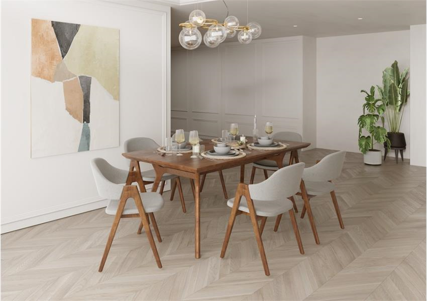 Table: Aran, The graceful wood base extraordinary dining table which is available in both round and rectangular shapes with a beech veneered surface and elegant angled edge is one of the best choices to make your room more cozy and warm.