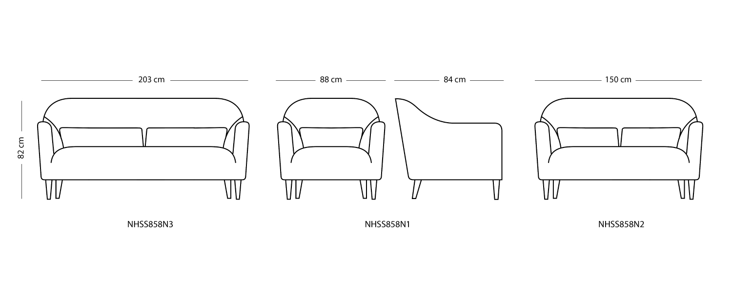 In terms of style, the 858 sofa is placed in the subcategory of modern and post-modern styles. The straight form of the handle has curves and beautiful curved lines in the handles, which are connected to the back in an integral way, and instills a special sense of calmness and beauty to the product. Also, a beautiful circular shape is used in the design of the backs. Wooden bases also convey a sense of intimacy and peace to the user, and considering that wood material has been popular with Iranians for a long time, it helps to make this product more attractive. The shape of the legs of this sofa is angular and based on the fashion of the market. The seat and the back of this sofa are integrated, which makes the visual appearance of the product simpler and more minimal, as well as the lower price. According to the style and appearance of this product, the suitable cover for this sofa is velvet or fine taro fabric (such as Avesta, Salsa, New Tiffany, Diva, etc.). The cushions of this sofa are rectangular and made of vertical layer material, which, in addition to the more beautiful quality of the sofa, fills the back arch and improves the sitting posture. There are two cushions on the three-seaters and one on the single-seaters. In general, in the design of this product, the gestalt and overall body of the product along with macro elements are designed with general and correct proportions. Also, a proper harmony between the components and forms has been established with each other. The appearance of the product is completely homemade and suitable for the architecture and style of Iranian houses.