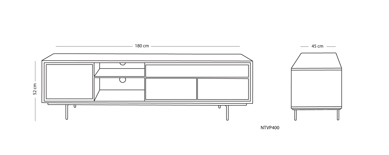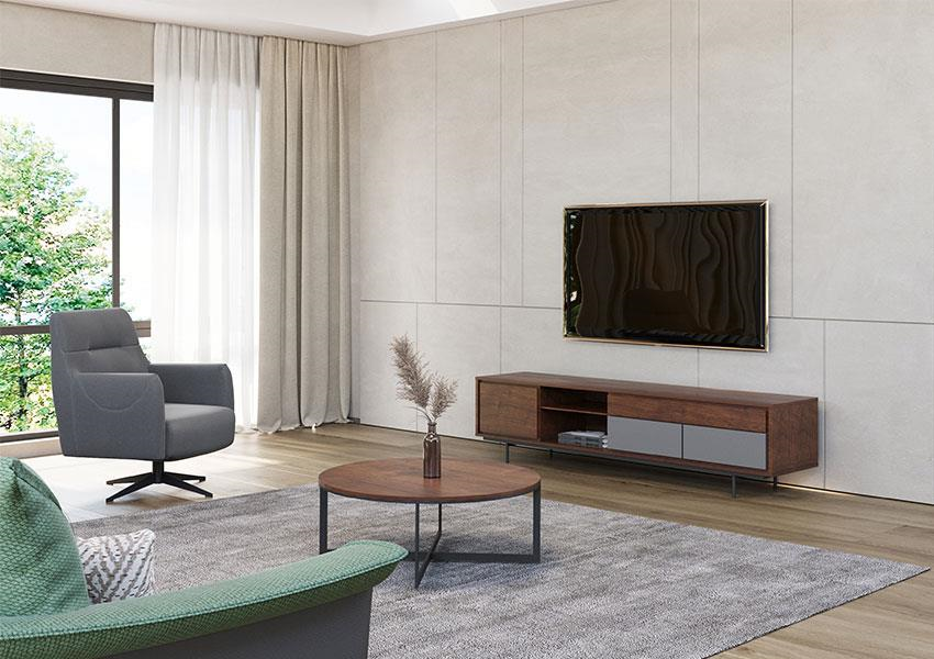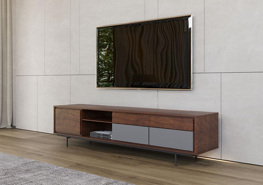 Design Style: Alvand TV stand is designed in a modern style using a combination of wood and metal